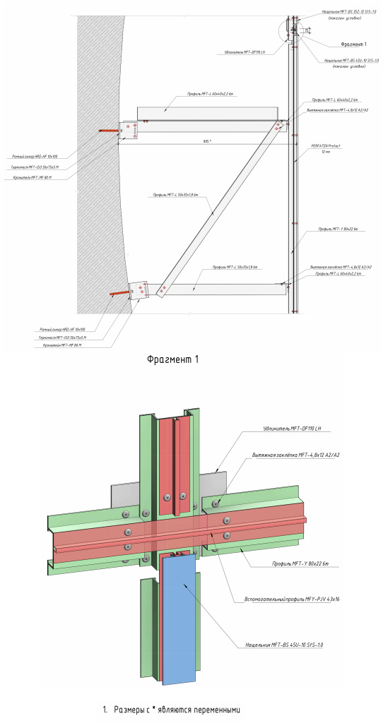 • Каркасная подсистема для монтажа облицовочных панелей
