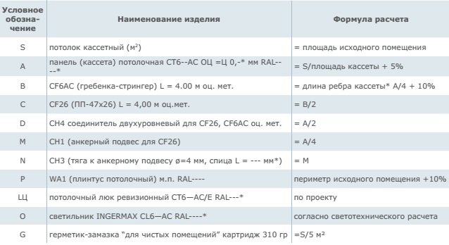 Расчет деталей, комплектующих герметичного кассетного потолка INGERMAX СТ600-625AC со скрытой подвесной системой