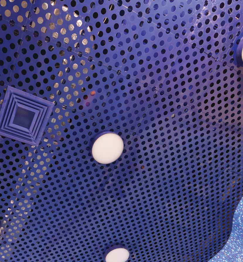 Потолочная система HOOK-ON позволяет проникать в запотолочное пространство и заменить поврежденную панель, демонтируя лишь одну. Различные виды перфорации и специальная акустическая подложка увеличивают коэффициент звукопоглощения и создают благоприятную акустическую среду в помещении.