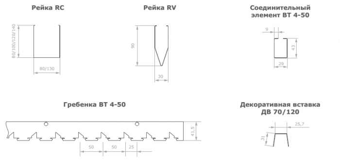 - Гребенка ВТ4-50 – оцинкованная сталь.