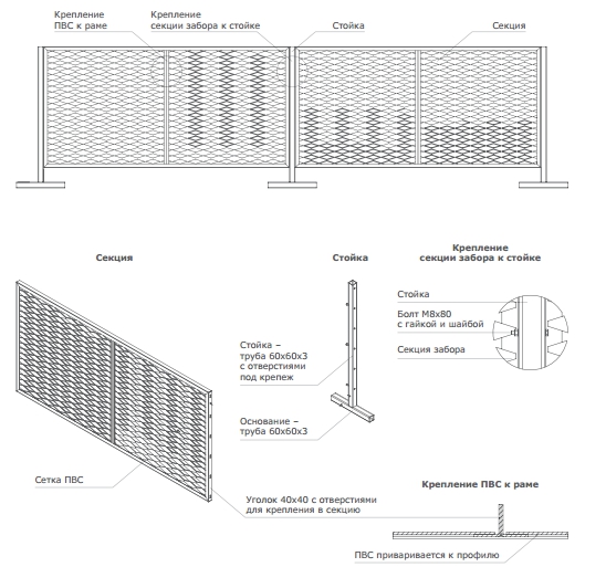 • Ограждения из ПВС