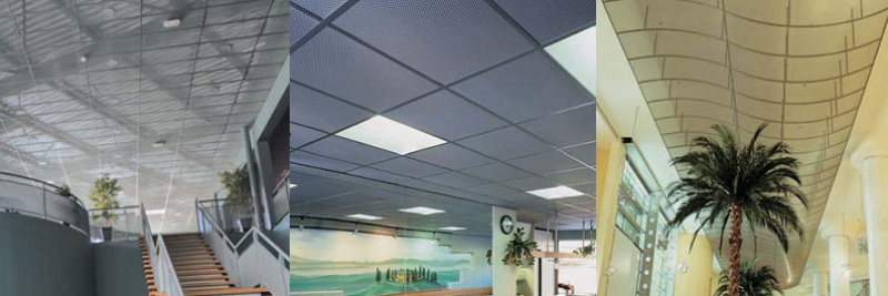 Интересная текстура материала и разнообразие конфигураций ячеек позволяют реализовать множество самых неожиданных дизайнерских идей. Просечно-вытяжная сетка идеально подходит для оформления подвесных потолков на путях эвакуации, а также в помещениях, к которым предъявляются повышенные требования по обеспечению пожарной безопасности(класс горючести НГ).